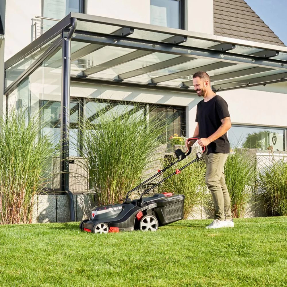 The AL-KO 3.82 Li R Easy incorporates dual battery slots so you can get extended run times with the two 4.0Ah batteries provided. An LED battery indicator is located in clear sight to keep you informed of the charge level status. A push-propelled machine, the efficient motor offers high performance and efficiency.