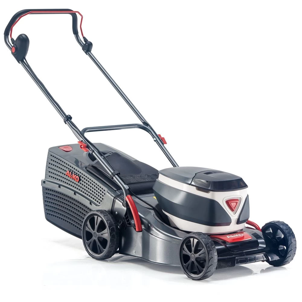 The AL-KO 36V 42.2 Li Comfort is a hand-propelled 36V cordless lawn mower equipped with a sturdy 42cm steel cutter deck.