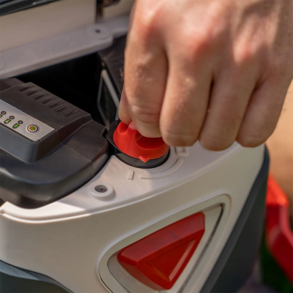 The battery compartment houses up to two batteries with ‘Balanced Discharging System’ for maximum run time, careful discharging of the batteries and long service life. The LED display makes it clear to see when it needs to be charged. This lawn mower kit is supplied with one 4Ah battery and charger; the 46.2 Li SP model is also available to purchase with two 4Ah batteries and charger (AK123010).