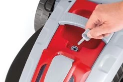 A 2-in-1 mower ideal for lawn areas up to 300 square metres, the cutting height can be adjusted centrally through six stages between 25 to 75mm. Grass clippings are collected in a 45 litre grass bag with an integrated fill-level indicator, whilst high rear wheels aid manoeuvrability and smooth running.