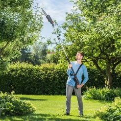 The CSA 1820 18V Bosch Home & Garden Compatible cordless pole pruner impresses with its proven AL-KO quality and design, making this machine a light and emission-free helper to limb and shape your trees with your feet firmly on the ground.