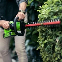 The hedge trimmer is powered by a high speed 420W motor which delivers powerful, quick, clean cuts. The 45cm blade length and 16mm tooth spacing design make this hedge trimmer ideal for light trimming work. The blade tip protector ensures safe trimming along walls and paths.