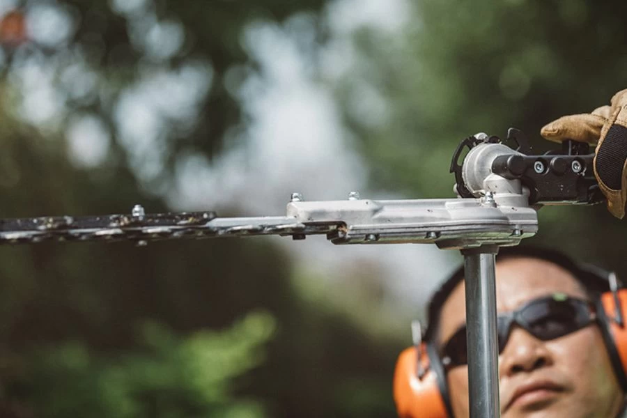 The HCA-265ES-HD is a long reach articulating hedge cutter with an overall length of 2446mm. This means the hedge cutter is perfect for trimming tall and wide hedges with less reliance on ladders and platforms.