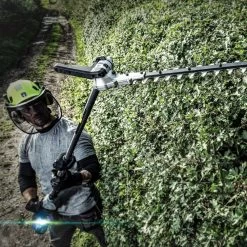 The EGO Power+ HTX5300-PA is equipped with a 53cm-long blade with a 28mm blade gap to deal with those thicker branches. The variable trigger offers precise cutting control with three cutting speeds to enhance the hedge cutter’s suitability for different trimming tasks. The articulating cutting head and gearbox increase versatility for a variety of jobs, rotating through 180 degrees across 10 positions for ultimate control and precision.