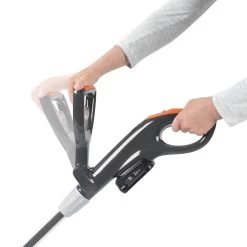 The 26cm (10″) line trimmer head is equipped with single 1.6mm diameter nylon cord. The flower guard lets you cut right up to the edge of the garden while protecting plants. For accuracy when edging, a wheel helps to safely guide the machine and supports the weight of the trimmer.