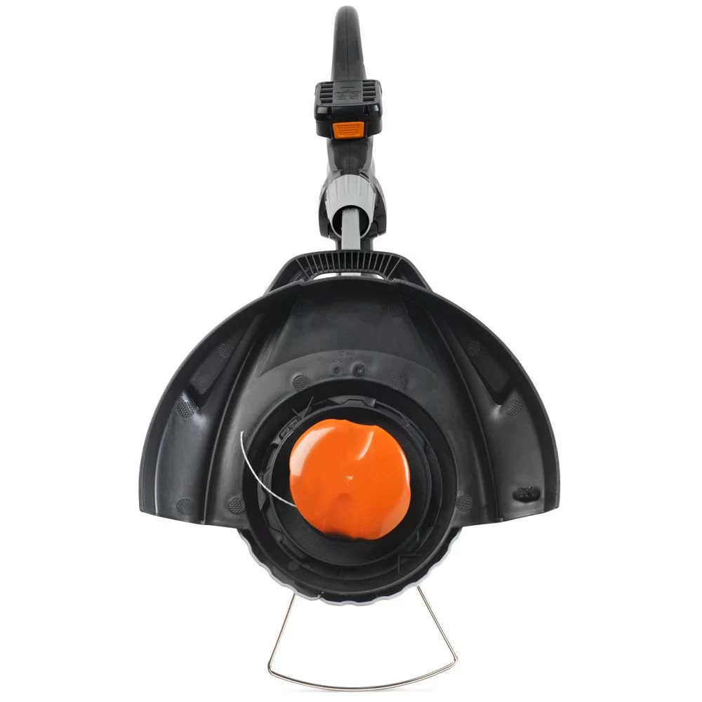 The 26cm (10″) line trimmer head is equipped with single 1.6mm diameter nylon cord. The flower guard lets you cut right up to the edge of the garden while protecting plants. For accuracy when edging, a wheel helps to safely guide the machine and supports the weight of the trimmer.