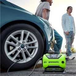 The GreenWorks inflator works with 24-volt rechargeable battery or 12-volt vehicle power outlet to meet your daily and car use, to make sure you can use it wherever you want.