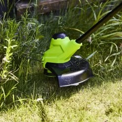 The GreenWorks G24LT25 is a robust, lightweight 24V grass trimmer designed for smaller lawns. Powered by an advanced 24V lithium-ion battery, the trimmer offers high performance despite its compact size. Convenience is guaranteed with no fuel or electric cables to contend with, simply insert the battery and trim.