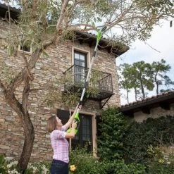 The GreenWorks 24v pole saw allows you to reach high into trees and bushes. This means you don’t have to stand on dangerous and wobbly ladders to be able to prune.