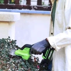 The GreenWorks G24SHT is a versatile and lightweight 24V 2-in-1 garden shear kit including grass and shrub shear blade attachments which make this compact tool perfect for trimming ornamental trees and hegdes, or for edging around patios or flower beds.