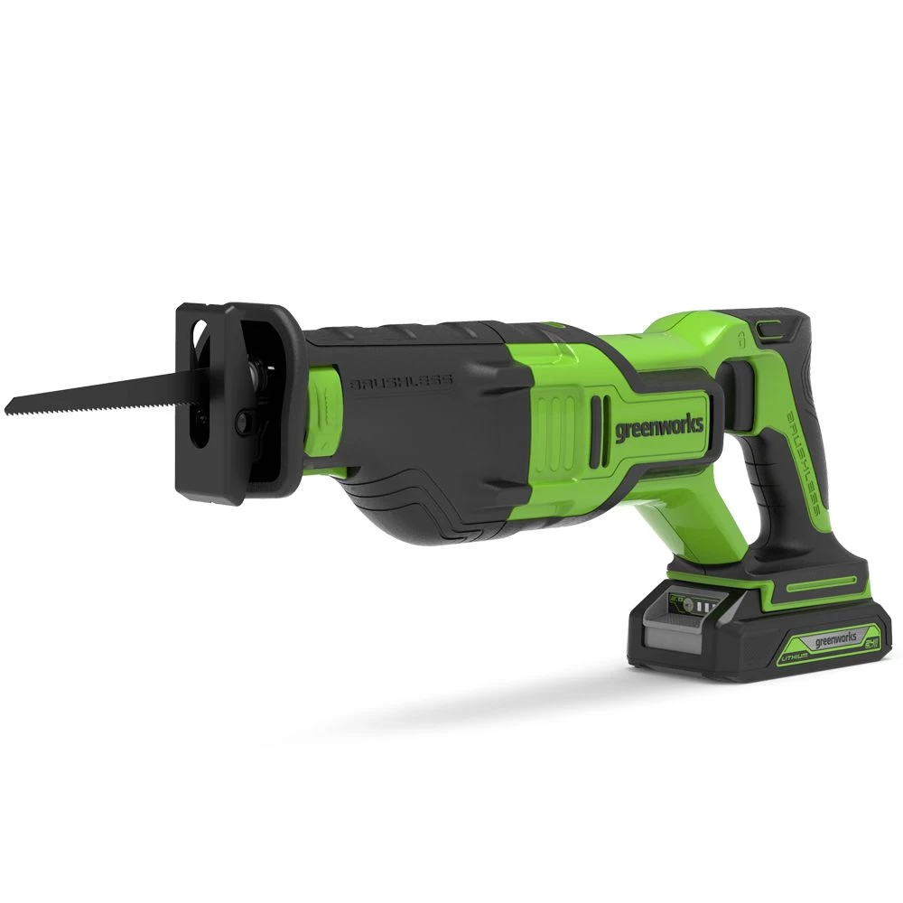 The Greenworks GD24RS is a robust, lightweight 24V reciprocating saw designed for home DIY. Powered by an advanced 24V lithium-ion battery, the tool offers high performance despite its compact size.