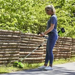The GreenWorks GD24X2BCB is a durable yet lightweight brush cutter for small to medium sized gardens. Powered by an advanced double battery system the machine offers 48V performance using 2 x 24V batteries. As part of the 24V family, the battery can be used in any of the other tools available, for total flexibility and convenience.
