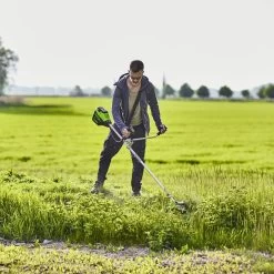 The Greenworks GD60BCB is a lightweight yet exceptionally powerful brush cutter with ergonomic bike handles designed for medium to large sized lawns. Powered by an advanced 60V lithium-ion battery the machine offers impressive performance and long runtimes, making it a true petrol alternative, without the emissions, vibration or noise.