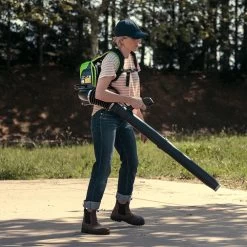 The GreenWorks GD60BPB is a professional quality knapsack leaf blower, ergonomically designed so that all the weight is carried on the back and the blower is easily controlled by a joystick. The high efficiency DigiPro brushless motor is engineered to provide more power, additional torque, quiet operation and longer motor life.