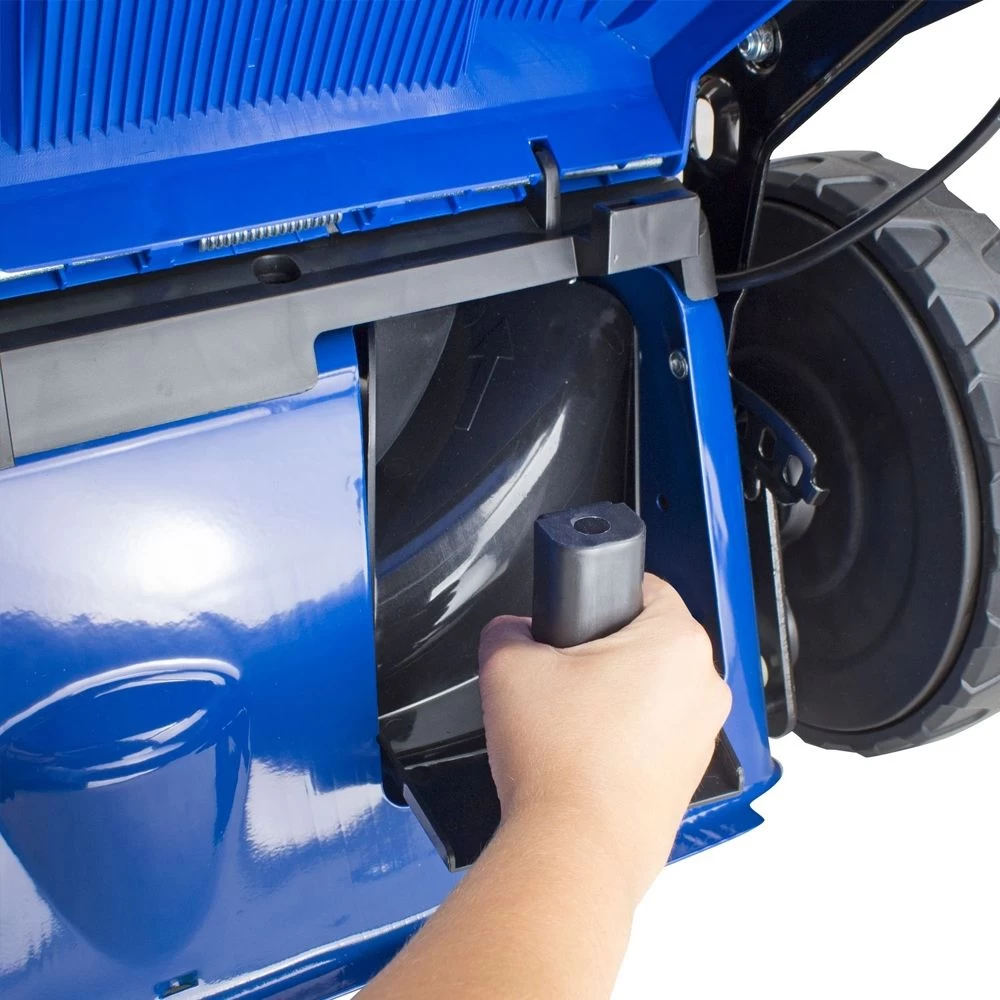 With a cutting width of 452mm, the lawn mower also features a large quick release vented 65 litre grass catcher with a hard lid, meaning you spend less time emptying the cuttings and more time mowing. Attaching and removing the grass collection bag couldn’t be simpler, and the convenient grass level indicator on the top of the grass catcher will always inform you when the grass catcher is ready to be emptied.