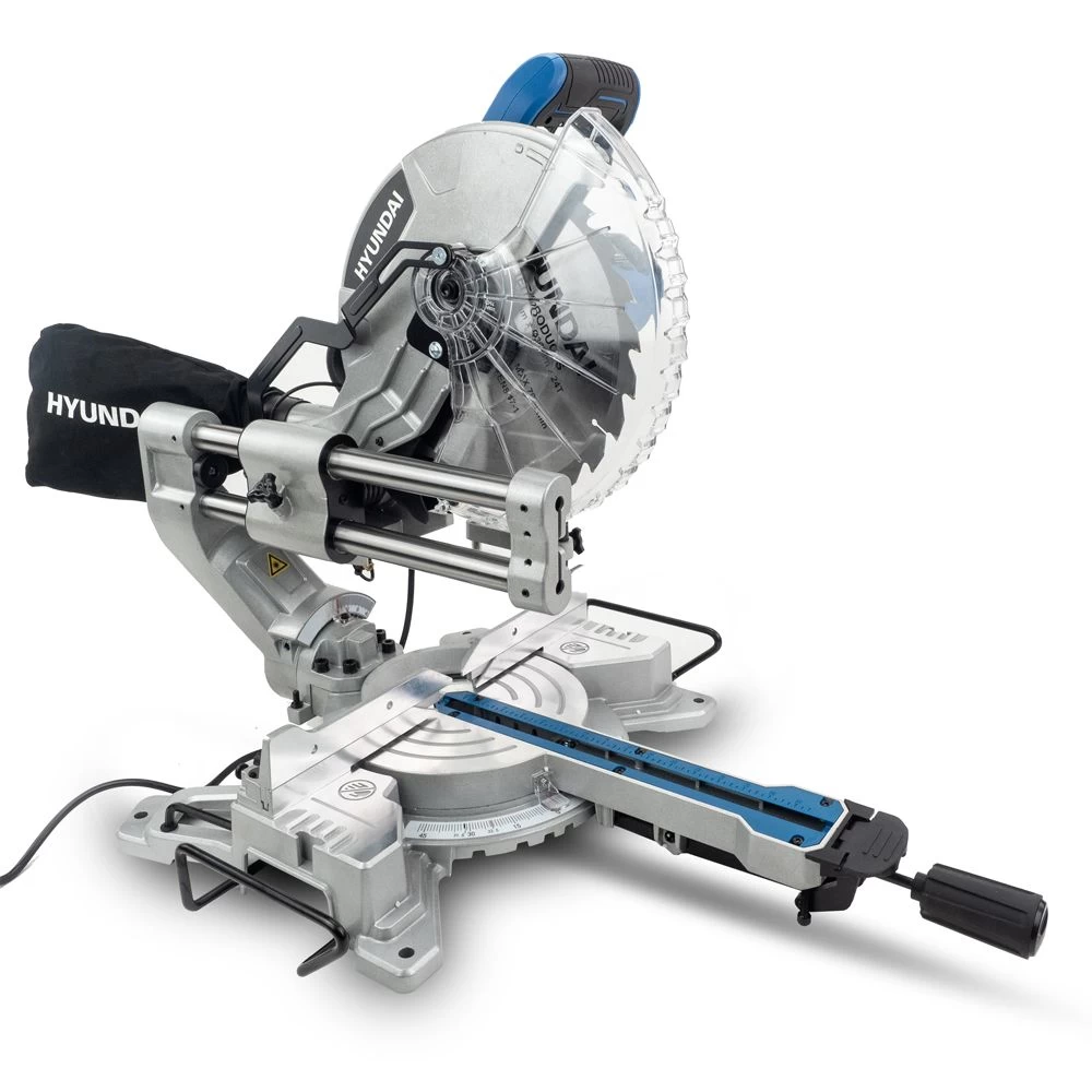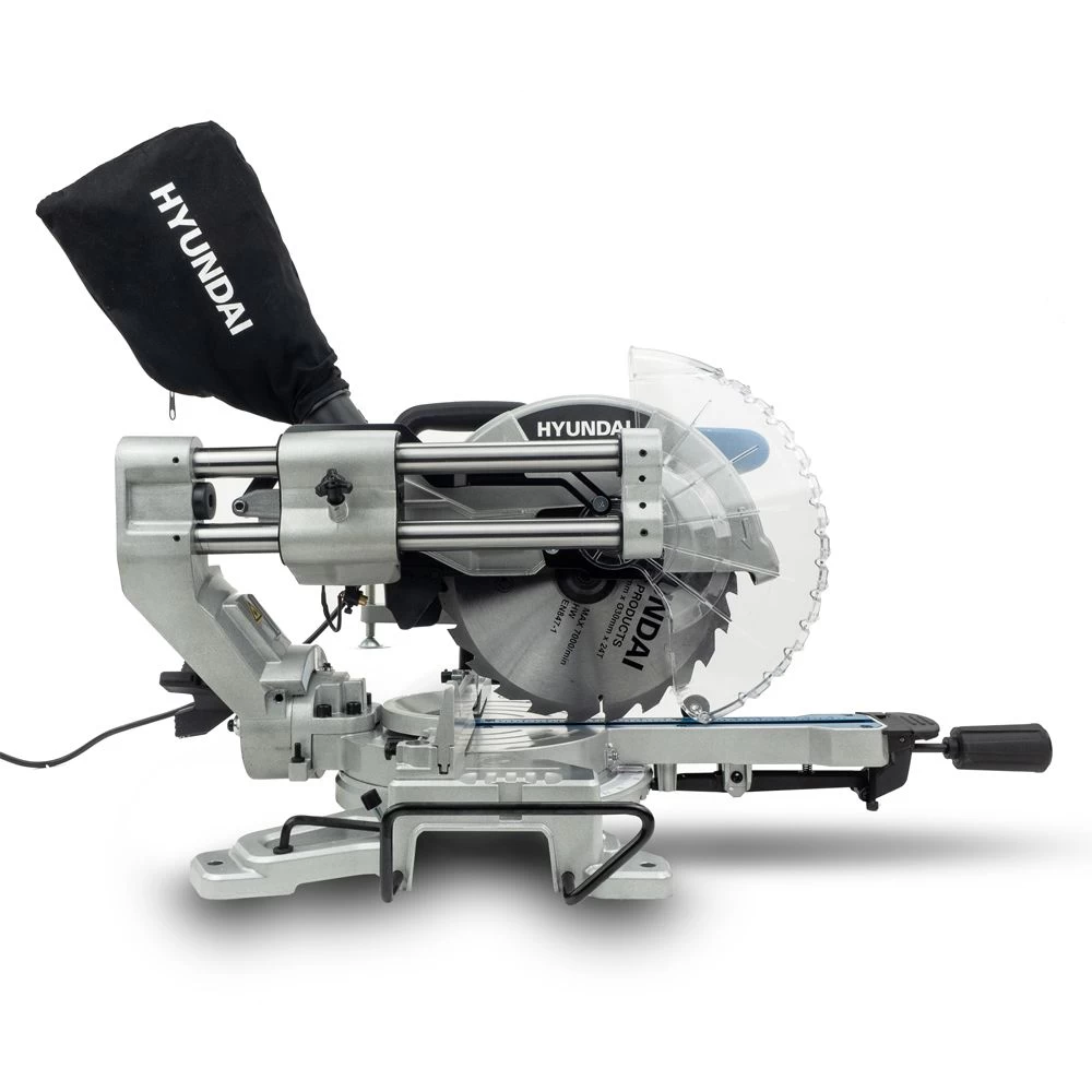 The HYMS1500E is an electric sliding mitre saw from Hyundai. The larger of Hyundai’s two sliding electric mitre saws, this saw is equipped with a large high torque 2000W motor and 255mm tungsten carbide-tipped blade for a range of DIY woodworking projects, including making furniture such as benches, display shelves and picnic tables, cutting wood / laminate flooring or decking to size, and cutting trim, skirting boards and beading.