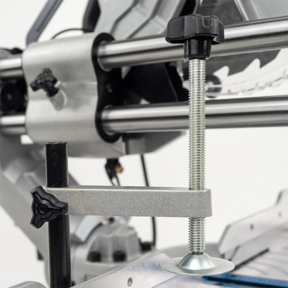This electric chop saw features supports on both sides of the saw for added stability whilst cutting, as well as a wood/plastic clamp to firmly secure your workpiece for added safety and guaranteed precise cutting angles.