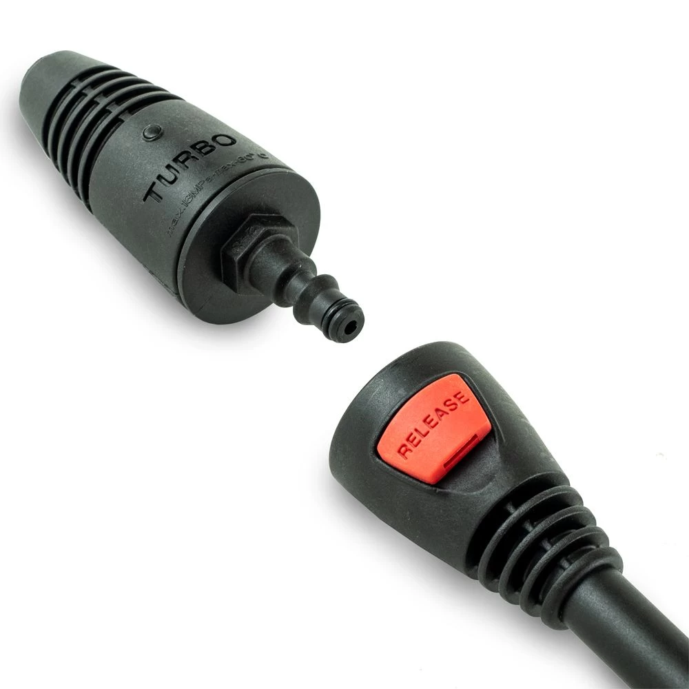Alongside the lance, this power washer is supplied with different head attachments, including a turbojet nozzle for concentrated cleaning and variojet nozzle for versatile cleaning, and also comes with a brush for more effective cleaning on cars, patio furniture, etc. It’s even supplied with a rotary patio cleaner to speed up cleaning flat surfaces. It’s also supplied with a premium foam cleaner detergent bottle; this electric power washer simplifies applying extra cleaning agents and gives you an extra cleaning boost when pressure washing your car, van, or motorhome.