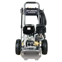 This petrol pressure washer model is favoured by cleaning professionals and used in industrial, agricultural and commercial environments. As the largest Hyundai petrol pressure washer, it’s also portable and well balanced, mounted on a solid base with large puncture-proof foam filled tyres on single-piece wheels. Weighing 61kg, the HYW4000P is easy to transport from one job to the next, which is essential for professional cleaners.