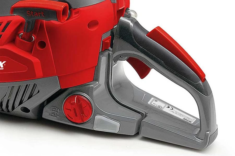 Comfort during operation is enhanced via the anti-vibration front and rear handles. Large durable triggers make the machine easier than ever to use and its integrated soft grip is comfortable and practical. The extra wide rear handle base provides protection for the rear hand and also houses an integrated tool for spark plug and chain cover removal. Maintenance access is quick and easy as the cover can be removed without tools.