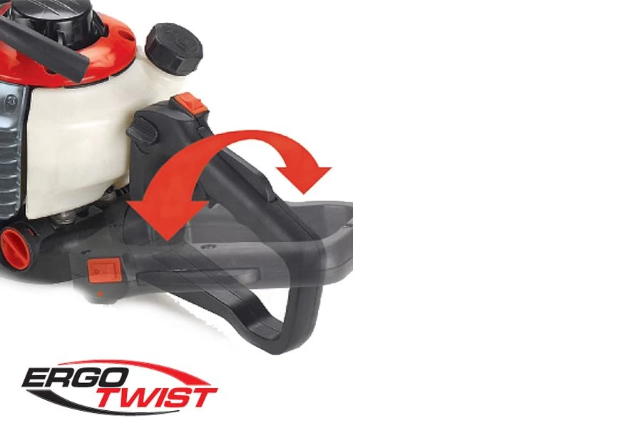 A key feature of the Mitox 600DX Premium hedge trimmer is the adjustable rear handle which twists through 180º to enable an ergonomic grip at any working angle. The combination of its low weight and well balanced centre of gravity minimise operator fatigue and ensure optimal comfort whilst shaping and trimming large areas of hedge.
