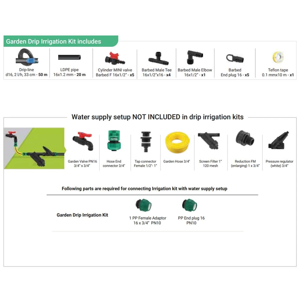 Water supply setup NOT INCLUDED in drip irrigation kits:-