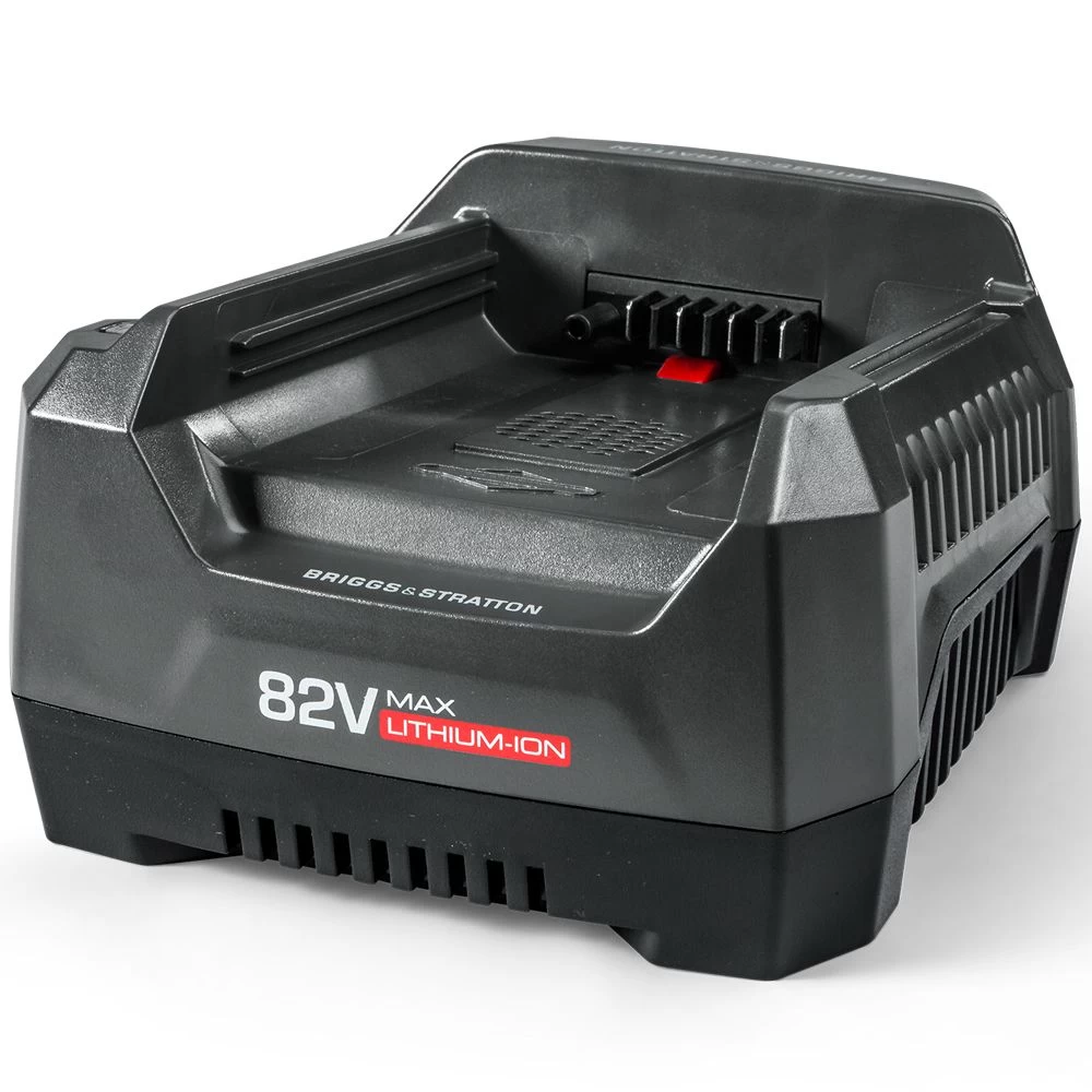 Power is provided by 2 x 2Ah lithium-ion Briggs & Stratton 82 volt batteries, providing a run time of up to 35 minutes and allows the user to enjoy petrol like power, without fumes and fuss. Meanwhile, its rapid battery charging station takes just 30 minutes to bring a 2Ah battery back to 100% capacity.