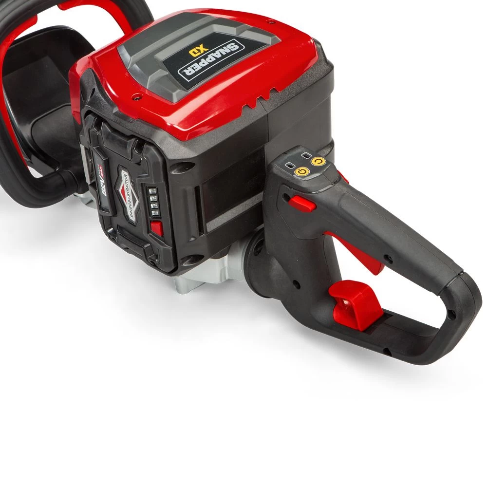 With its highly efficient 800 watt brushless motor, the Snapper SXDHT82 cordless hedge trimmer allows petrol-style performance without fumes and fuss.