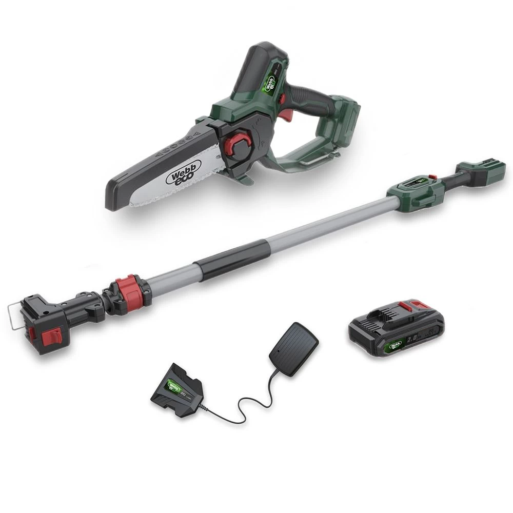 Unlock the capabilities of the Webb Eco 20V 15cm pruning saw / mini chainsaw with extension pole – your perfect, long-reaching tool for safely and efficiently cutting small tree limbs, branches and performing accurate pruning – even in high, hard-to-reach areas!
