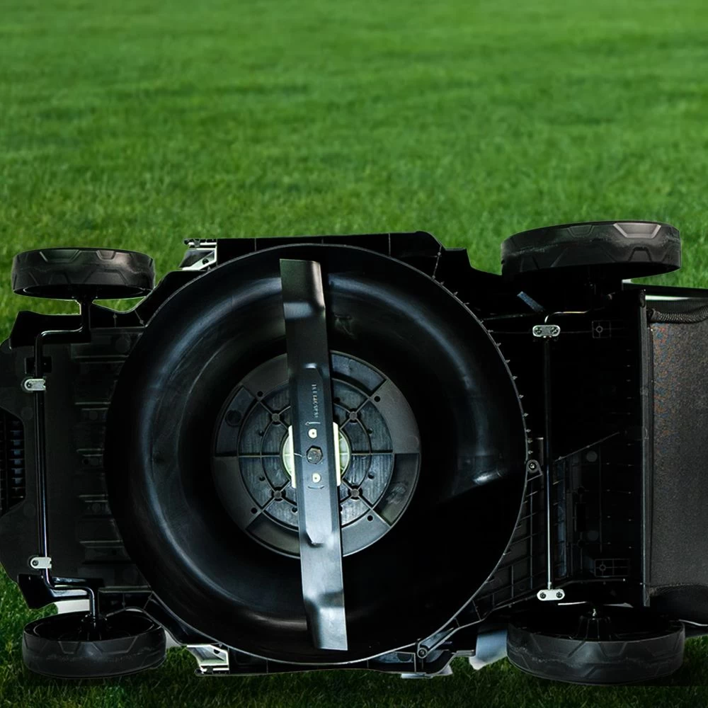 The Eco WEV20X2LM43B4X mower’s 43cm (17″) cutting width and six adjustable cutting heights, ranging from 25mm to 75mm, ensure efficient and precise lawn maintenance. It features a single lever for effortless cutting height adjustment, catering to versatile grass lengths. The 50 litre collection box, featuring a mesh design for optimized airflow, fills up completely before needing to be emptied, reducing trips to the compost heap.